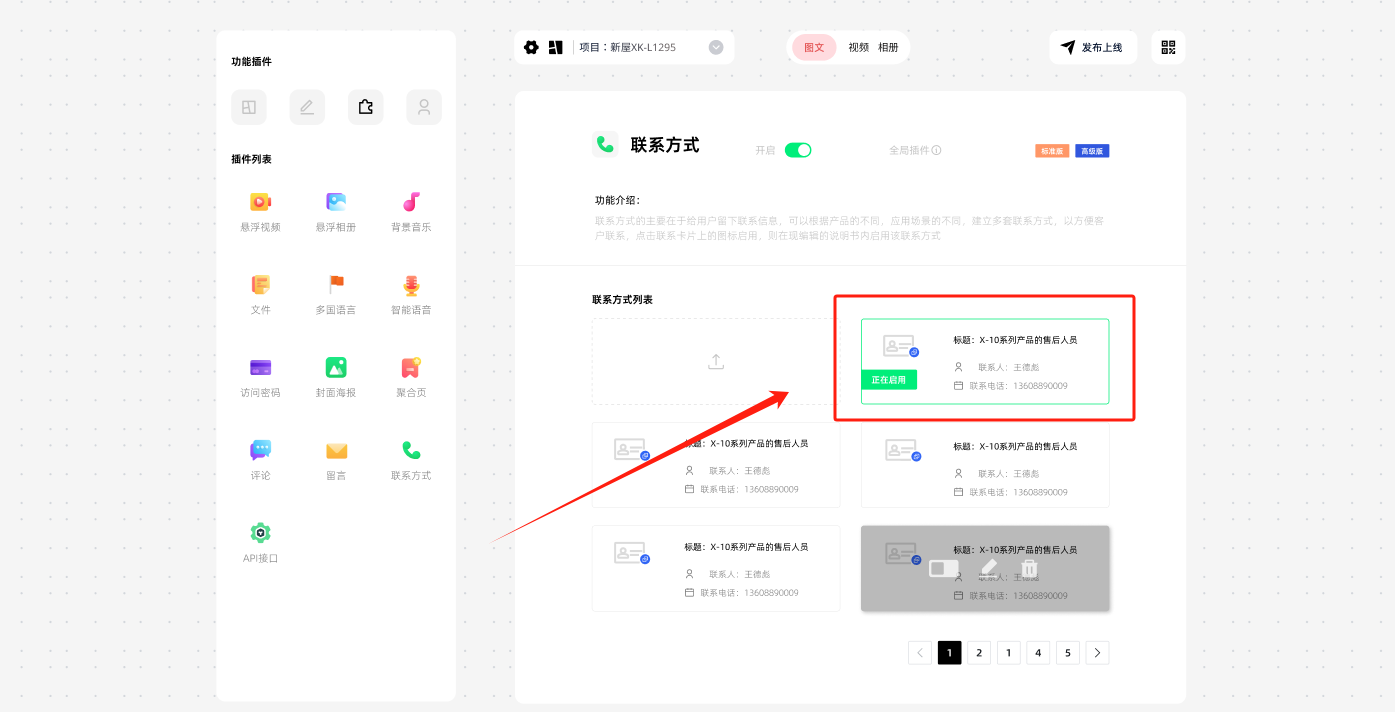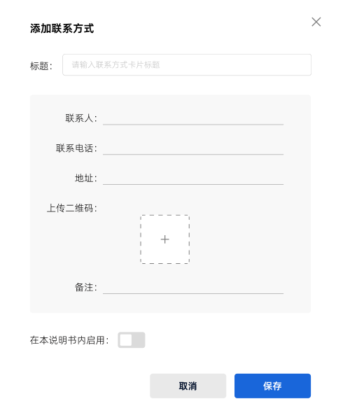提示:支持添加多人信息,在不同的说明书中启用不同的联系人信息