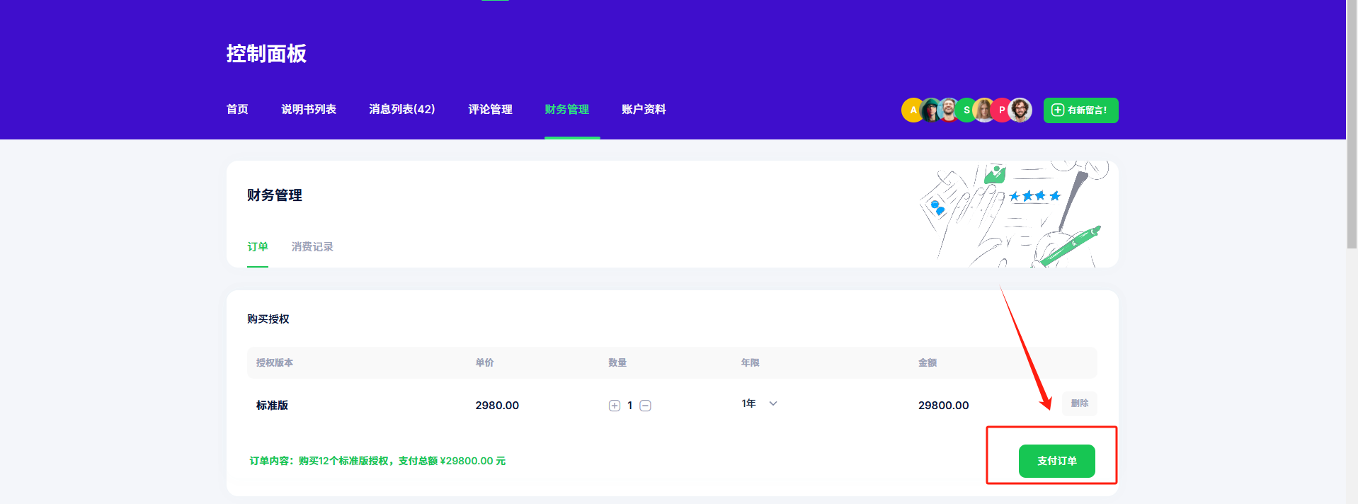3 支付订单: 选择支付方式完成支付即购买授权成功